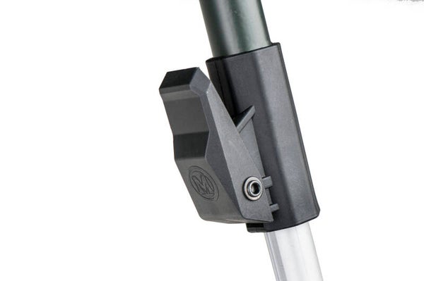 Es ist auf einem extrem leichten und steifen Aluminiumrahmen mit einer Traglast von ca. 160 kg aufgebaut. Der Stuhl verfügt über neu entwickelte Schlammfüße und neue Beinschlösser im einzigartigen Mivardi-Design. Vier selbstöffnende Teleskopbeine lassen sich einfach durch kurzes Drücken des Verriegelungshebels justieren.
