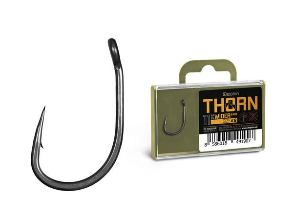 Delphin THORN ist eine Premium-Linie von Karpfenhaken von höchster Qualität. Dank der modernen Technologien, die bei der Herstellung verwendet wurden, stehen diese Haken für kompromisslose Stärke und maximale Schärfe. Die Haken der THORN-Serie sind mit einer titanX Oberflächenbehandlung versehen, die ihnen eine mattgraue Oberfläche verleiht, die zudem perfekt glatt ist, um leicht in das Karpfenmaul einzudringen. TitanX sorgt auch für die Verstärkung und Haltbarkeit des gesamten Hakens.