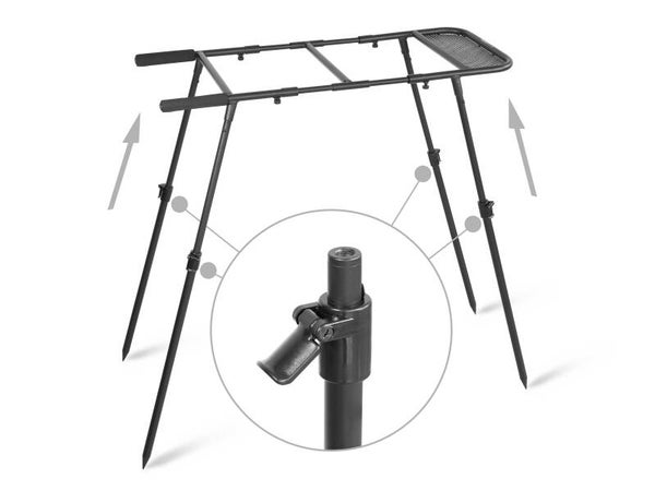 Die Konstruktion des Ständers besteht aus den hochwertigen Materialien, die resistent gegen äußere Einflüsse und mechanische Beschädigungen sind. Die Stabilität wird durch vier abnehmbare Beine gewährleistet, die auch teleskopisch sind, so dass Sie die Höhe des Ständers je nach den individuellen Bedürfnissen und dem Terrain anpassen können. Die Beine können auch als Einzel-Rutenhalter verwendet werden