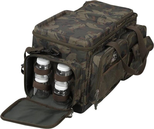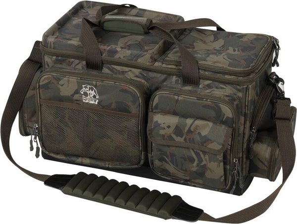 Jumbo - Tasche in dem neusten Patentiertem Camou Design ist ein zuverlässiger Begleiter für jeden Karpfen und Friedfischangler. Alle Teile sind aus einem Licht und wetterbeständigen Polyester hergestellt. Super strapazierfähig, abwaschbar, pflegeleicht.