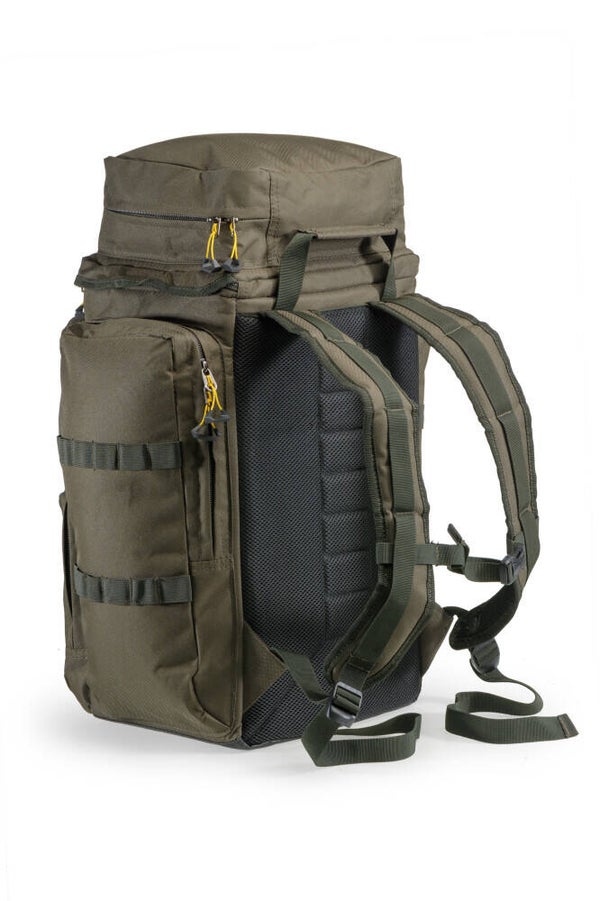 Der Rucksack ist gefertigt aus erstklassigen Materialien, Komponenten und die Verarbeitung ist hochwertig, dies alles zu einem außergewöhnlich günstigen Preis. Es sind bequeme, anatomisch geformten, gepolsterten Gurte, inklusive einer verstellbaren Brustschnalle und einem stabilen Haltegriff zum Tragen mit der Hand angebracht. Das Material des Rucksacks ist wasserdicht und abwaschbar. Zusätzlich ist der Boden verstärkt und gegen Feuchtigkeit von unten geschützt. Das Hauptfach verfügt über eine Innentasche zur besseren Organisation der transportierten Gegenstände. An den Seiten des Rucksacks sind große Seitentaschen mit zusätzlichen Schlaufen für Heringe, Teleskopruten und anderem Zubehör angebracht. Weitere Taschen befinden sich am Deckel und an der Vorderseite des Rucksacks. Alle Taschen sind mit robusten Reißverschlüssen und doppelten Reißverschlusszipper in Mivardi-Design für einen sehr einfachen Zugriff ausgestattet.