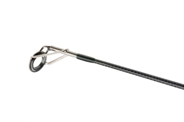Der Blank ist gefertig aus ExHMC70/55R Carbon und wird durch eine Kreuzwicklung verstärkt. Sie erlaubt große Wurfweiten und ist dennoch im Gegensatz zu gleichwertig ausgestatteten Ruten preiswerter.