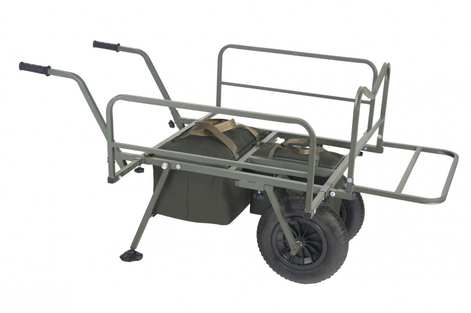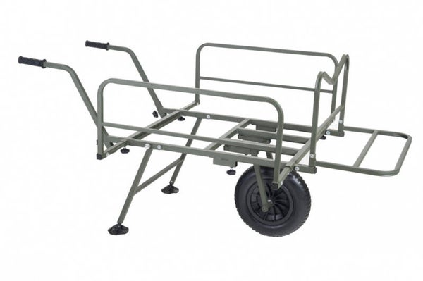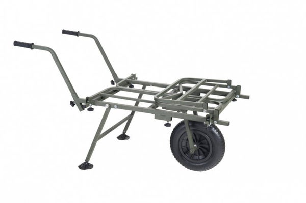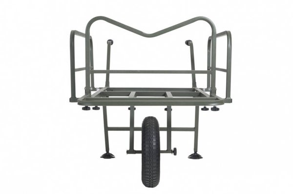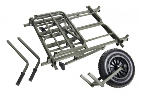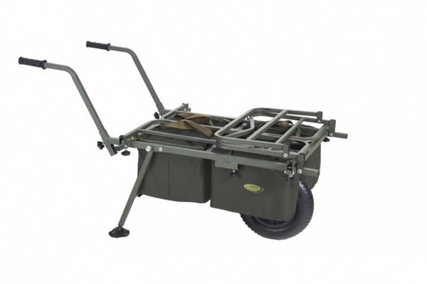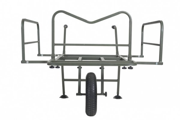Ein kompromissloses Trolleysystem, das für den Transport der gesamten Ausrüstung zum Angelplatz entwickelt wurde. Der Rahmen ist so konzipiert, dass die größten Taschen im vorderen Bereich ihren Platz finden.