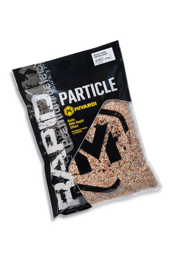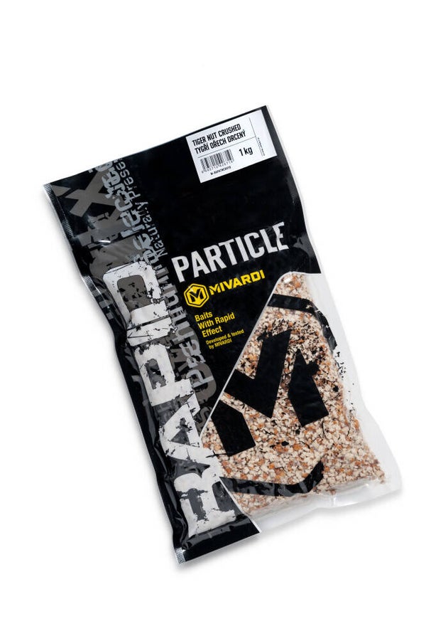 Zerkleinerte Tigernüsse, sofort einsatzbereit. Gerade beim Angeln auf sehr vorsichtige Karpfen eröffnet der Einsatz von Tigernüssen neue Möglichkeiten, Erfolge zu erzielen. Karpfen lieben es einfach, die Tigernüsse beim Fressen zu suchen, einzusammeln und zu zerquetschen. Daher schätzen spezialisierte Karpfenangler immer wieder die unglaubliche Attraktivität und Lockwirkung dieses bewährten Naturköders.
