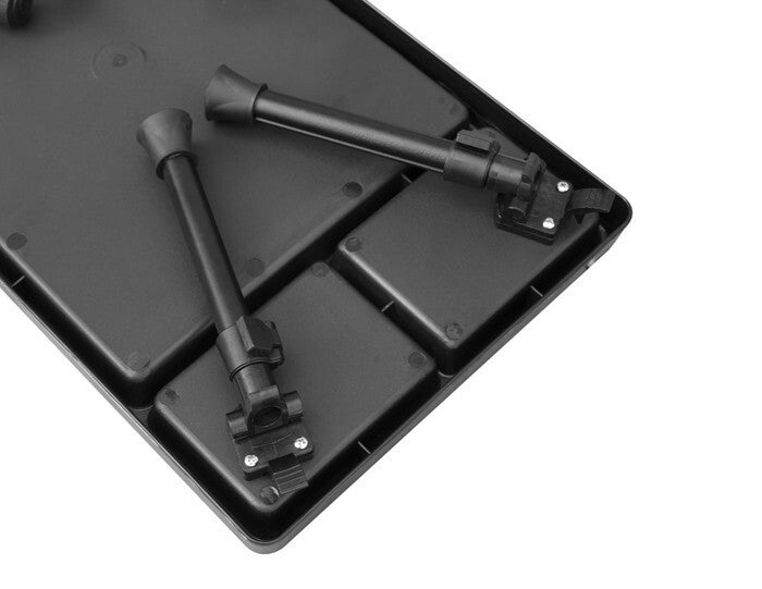 Die Beine können mit einem speziellen Verriegelungssystem verriegelt werden.Es besteht keine Gefahr, dass der Tisch und die darauf befindlichen Dinge zusammenfallen.Die Enden der Beine sind für eine bessere Stabilität mit Gummienenden ausgestattet. WORKS wird mit einer Tragetasche geliefert.