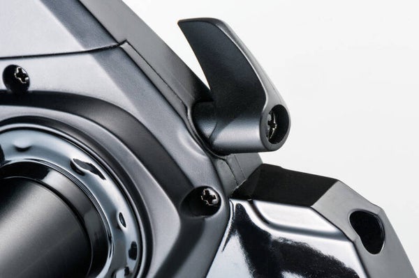 Das Gewicht der Rolle wird gleichzeitig durch ein starkes, schnell verstellbares Carbon-Bremssystem reduziert. Mit nur einer halben Umdrehung des Bremskopfes lässt sich das volle Potenzial der Bremse ausschöpfen.