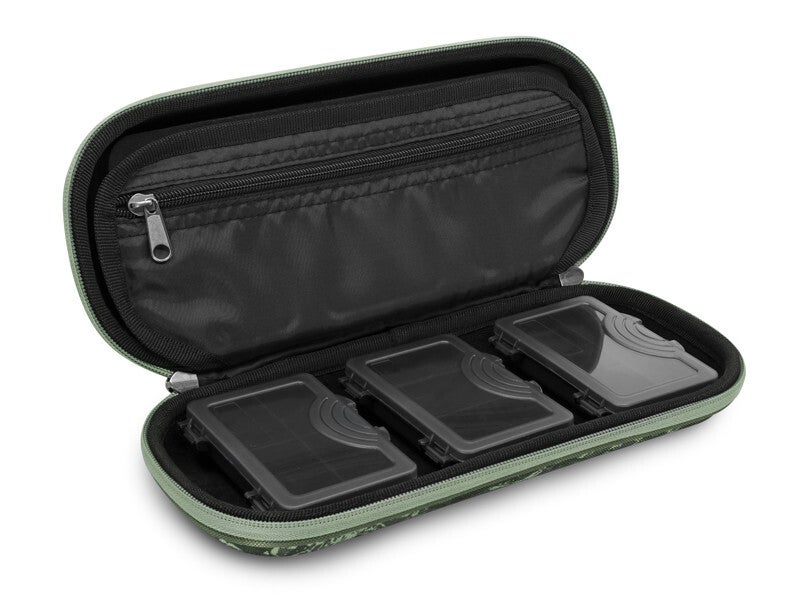 Ein luxuriöses Etui für Vorfächer, das auch die anspruchsvollsten Erwartungen erfüllen wird. Die Außenverpackung ist gehärtet, so dass keine Gefahr für den Inhalt der Tasche besteht. Am oberen Teil ist ein komfortabler Griff angenäht, der sich mit hochwertigen Reißverschlüssen mit praktischem Kunststoffhalter öffnen lässt.