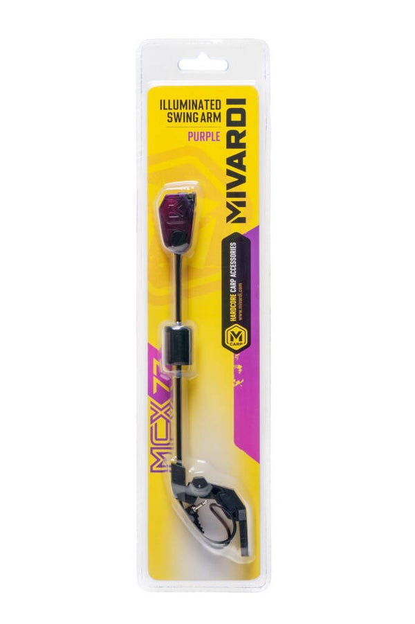 Beleuchteter Swing Arm dessen Design von uns gestaltet wurde. Die Stromversorgung erfolgt direkt über die Bissanzeiger. Sein kristallklarer Körper leuchtet bei einem Biss auf. Der sehr leichte Kopf des Indikators kann bei Bedarf durch ein verschiebbares Gewicht deutlich beschwert werden. Ein zuverlässiger Clip hält die Schnur oder das Geflecht unabhängig von Durchmesser und Gewicht sicher am Kopf des Swing Arms. Gewährleistet ist jedoch die zuverlässige Freigabe der Schnur wenn die Rute bei einem Biss aufgenommen wird und der Swing Arm in der unteren Position festgehalten, wodurch ein Auftreffen auf einen Bankstick oder ein weiteres unwillkürliches Schwingen des Swing Arms verhindert wird.