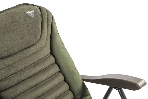 Die Premiumversion und das Flaggschiff der Quattro-Stuhlserie – von zehntausenden zufriedenen Kunden weithin als die besten Stühle auf dem Markt angesehen. Ein leichter, aber äußerst stabiler Rahmen wird durch robuste Armlehnen ergänzt, die auch unter hoher Belastung formstabil bleiben und gleichzeitig zur Verstellung der Rückenlehne dienen. Die Beine verfügen über ein automatisches Auszugssystem und sind mit großen Schlammfüssen ausgestattet, die ein Einsinken in weichem Untergrund verhindern. Das zentrale Merkmal dieses Stuhls ist die extrem bequeme Matratze, die aus hohl gefüllten und gleichzeitig weich gepolstertem Material besteht und mit einem kuscheligen Fleece-Material überzogen ist. Ergänzt wird der Komfort durch ein großes, klassisch gestaltetes Kopfkissen mit dicker, weicher Polsterung.