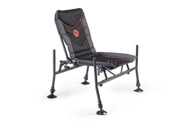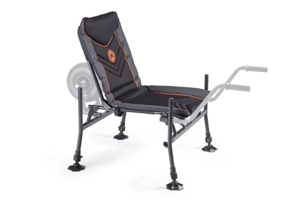 Ein spezieller Stuhl, der gezielt für das Feederangeln entwickelt wurde. Er ist mit vier teleskopierbaren Beinen ausgestattet, die eine einfache Positionierung auch auf unebenem Untergrund ermöglichen. Die Beine haben einen Durchmesser von 25 mm, was sie mit einer Vielzahl von Zubehörteilen kompatibel macht, die für diese Standardgröße erhältlich sind.