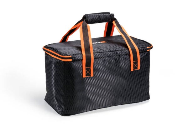 Eine Innen und Außen abwaschbare Kühltasche mit komplett verstärktem Aufbau. Das Innenfach ist durch eine herausnehmbare Trennwand unterteilt.